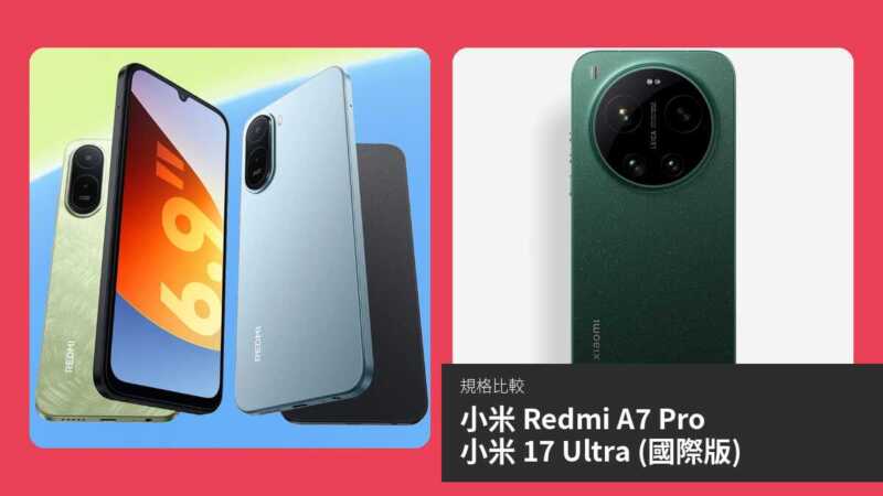 小米最近發佈兩款備受矚目的手機:Redmi A7 Pro 與 小米 17 Ultra (國際版)。前者於 2026 年 2 月 27 日公布,並於 3 月 13 日上市,定位入門級市場;後者則於 2 月 28 日公布,預計 3 月發佈,屬旗艦級產品。本文將透過規格對比與詳細分析,幫助讀者了解兩者在屏幕、效能、攝影及連接性等方面的差異,助你選擇最適合的機型。無論預算有限或追求頂級體驗,這場比較將提供客觀洞見。