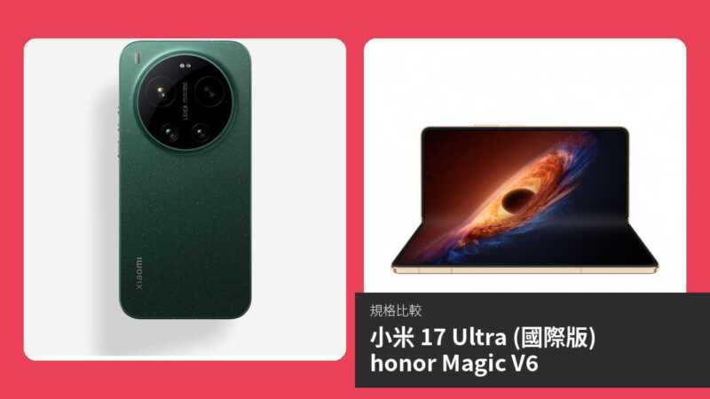 小米 17 Ultra (國際版) 與 honor Magic V6 均為即將於 2026 年 3 月發佈的旗艦手機,前者為傳統直板設計,後者則為摺疊屏旗艦。本文將從多個關鍵規格進行詳細比較,幫助讀者了解兩者在屏幕、效能、攝影及連接性等方面的差異,以客觀數據為基礎,分析哪款更適合不同需求用戶。