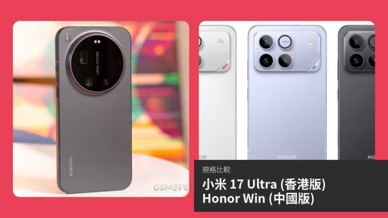 | 項目 | 小米 17 Ultra (香港版) | Honor Win (中國版) |