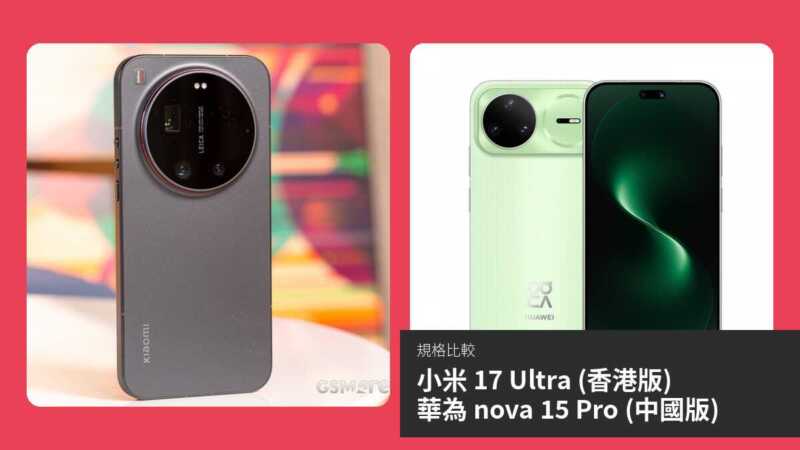 | 項目 | 小米 17 Ultra (香港版) | 華為 nova 15 Pro (中國版) |