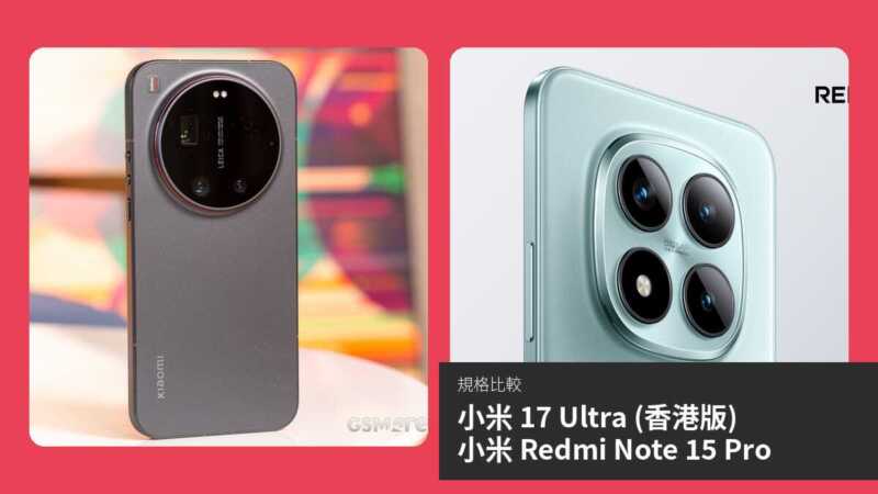 【手機比較】小米 17 Ultra (香港版) 與 小米 Redmi Note 15 Pro:規格表、效能、攝影功能