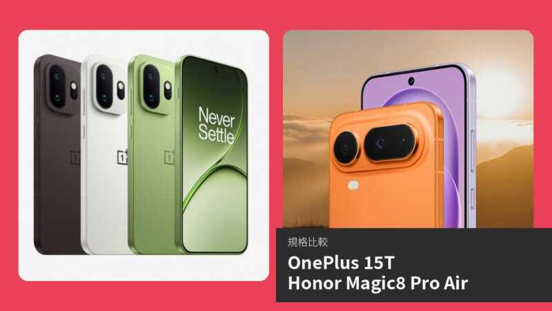 | 項目 | OnePlus 15T | Honor Magic8 Pro Air |