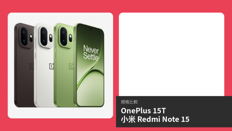 | 項目 | OnePlus 15T | 小米 Redmi Note 15 |