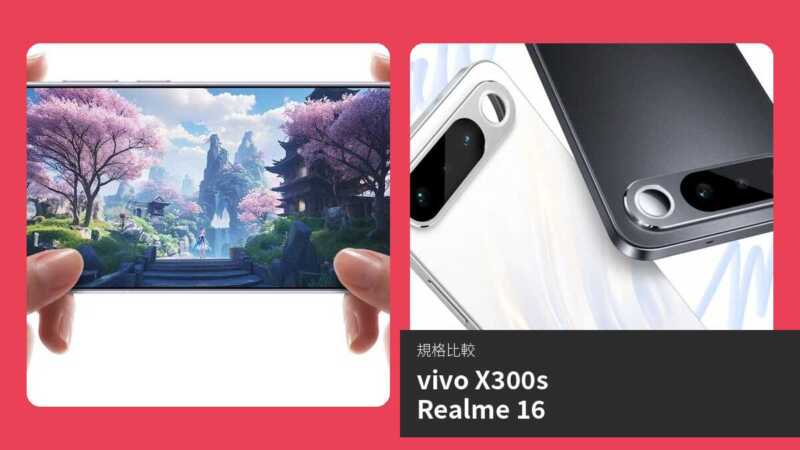 Realme 16 使用 MediaTek Dimensity 6400 Turbo (6 nm),八核心(2×2.5 GHz Cortex-A76 + 6×2.0 GHz Cortex-A55),GPU Mali-G57 MC2,RAM 最高 12GB,UFS 2.2 儲存,同樣基於 Android 16 及 Realme UI 7.0。vivo X300s 的 3 nm 製程及更高時脈帶來更強單核及多核效能,RAM 容量更大、儲存速度更快,日常及遊戲表現明顯優於 Realme 16。