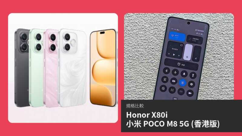 | 項目 | Honor X80i | 小米 POCO M8 5G (香港版) |