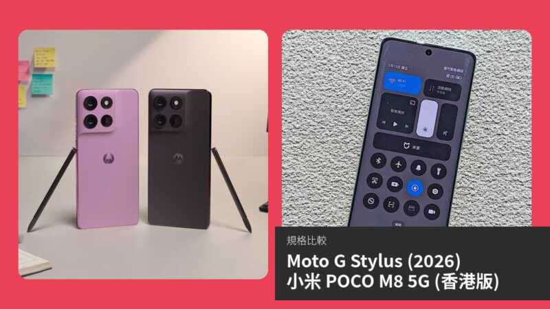 | 項目 | Moto G Stylus (2026) | 小米 POCO M8 5G (香港版) |