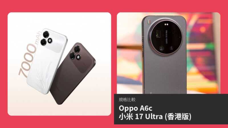 | 項目 | OPPO A6c | 小米 17 Ultra (香港版) |