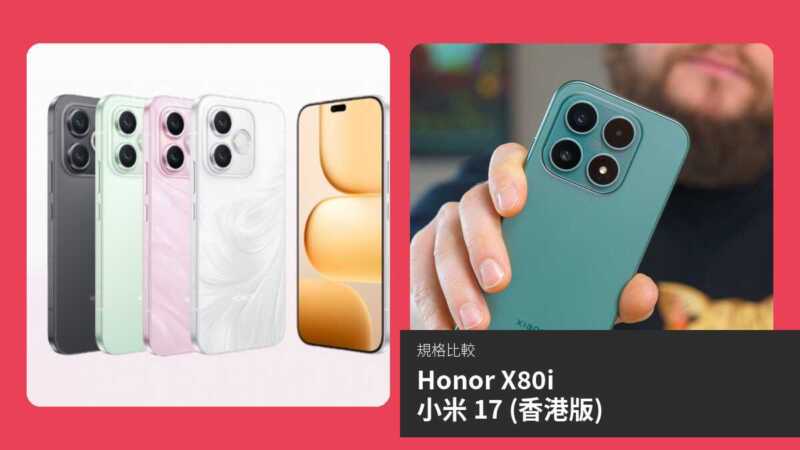 | 項目 | Honor X80i | 小米 17 (香港版) |