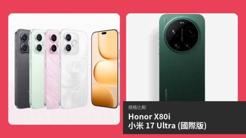 | 項目 | Honor X80i | 小米 17 Ultra (國際版) |