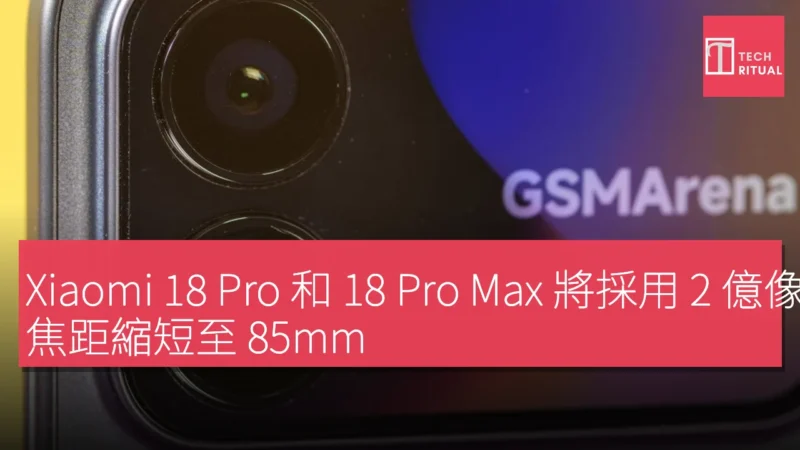 Xiaomi 預計將於九月份發佈 18 Pro 及 18 Pro Max,這是繼去年 17 系列後的下一代產品。根據一位知名消息人士的透露,這兩款新機將會搭載相同的 2 億像素長焦鏡頭。值得注意的是,這次的焦距為 85mm,遠低於 17 Pro 及 17 Pro Max 的 115mm 50MP 長焦鏡頭。因此,18 Pro 和 18 Pro Max 的變焦效果可能會標示為 3x 或 3.5x,而非現有機型的 5x。