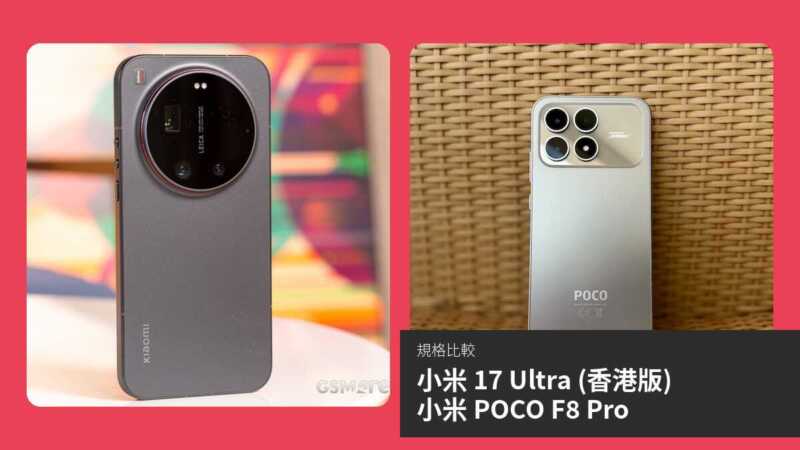 【手機比較】小米 17 Ultra (香港版) 與 小米 POCO F8 Pro:規格表、效能、攝影功能