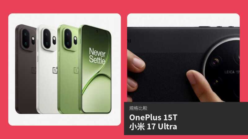 兩機處理器相同,效能不相上下。若偏好輕巧高效,選 OnePlus 15T;若重視影像與大屏,則小米 17 Ultra 更佳。最終選擇視個人需求而定,兩者均為 2026 年旗艦翹楚。(約 1980 字)