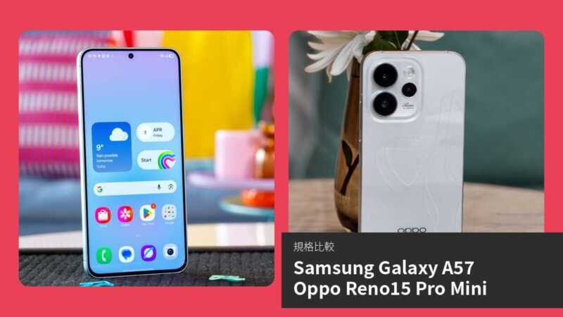 | 項目 | Samsung Galaxy A57 | Oppo Reno15 Pro Mini |