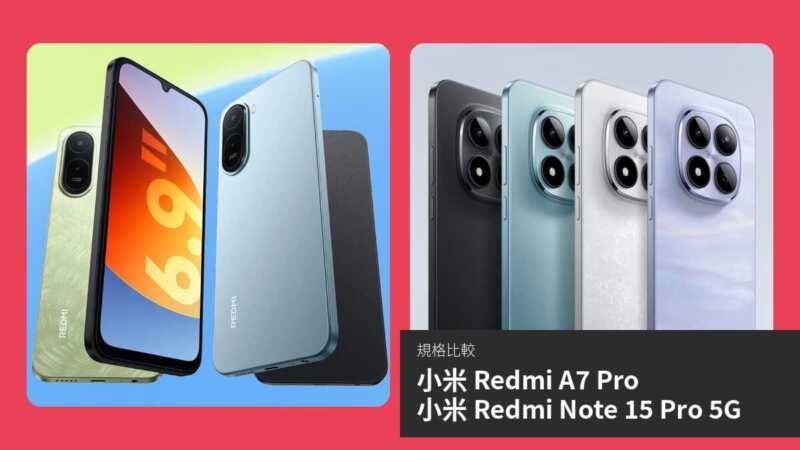 小米 Redmi A7 Pro 作為 2026 年 3 月發佈的入門級機款,以大電池和親民價格吸引注重續航的用家。至於小米 Redmi Note 15 Pro 5G,雖然是較早推出的中階 5G 手機,卻在螢幕、處理器和相機等方面展現強勢表現。本文將透過規格對比和詳細分析,客觀比較兩款手機的優劣,幫助讀者了解哪款更適合日常使用、攝影或效能需求。