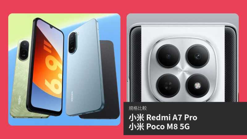 小米 Redmi A7 Pro 與小米 Poco M8 5G 是小米旗下兩款定位入門至中階的 5G 智能手機,前者於 2026 年 3 月發佈,後者則於同年 1 月推出。雖然 Redmi A7 Pro 較新,但 Poco M8 5G 在多項規格上更為先進。本文將透過詳細比較,剖析兩者在屏幕、效能、攝影、連接性等方面的差異,幫助讀者了解哪款更適合日常使用、攝影或高性能需求。
