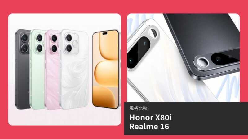 Honor X80i 與 Realme 16 均為中階 5G 智能手機,分別預計於 2026 年 4 月及 2026 年 2 月發佈,兩者均搭載大容量 7000mAh 電池及 AMOLED 屏幕,適合追求長續航及良好顯示效果的用家。Honor X80i 由榮耀推出,強調 MagicOS 10 系統的 AI 功能;Realme 16 則來自 realme,突出 IP68/IP69K 防水及更快的 60W 充電。本文將透過規格對比及詳細分析,客觀比較兩機在屏幕、效能、攝影及連接性等方面的表現,助讀者選擇適合自己的型號。