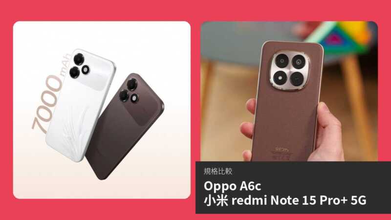若預算允許,小米 redmi Note 15 Pro+ 5G 整體更值得推薦;OPPO A6c 則是極致入門選擇。最終依個人需求而定,例如續航優先者選 OPPO,全面表現者選小米。