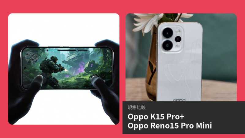 綜合比較,Oppo K15 Pro+ 在屏幕尺寸(6.78 吋 vs 6.32 吋)、效能(Dimensity 9500s + 風扇 + UFS 4.1)、電池續航(8,000 mAh + 100W)及 Wi-Fi 7 上全面領先,適合遊戲玩家、多媒體用戶及長續航需求者。Oppo Reno15 Pro Mini 則在攝影系統(2 億像素 + 長焦 + 高像素前置)及像素密度上更強,機身更輕薄,適合攝影愛好者及追求便攜的用戶。