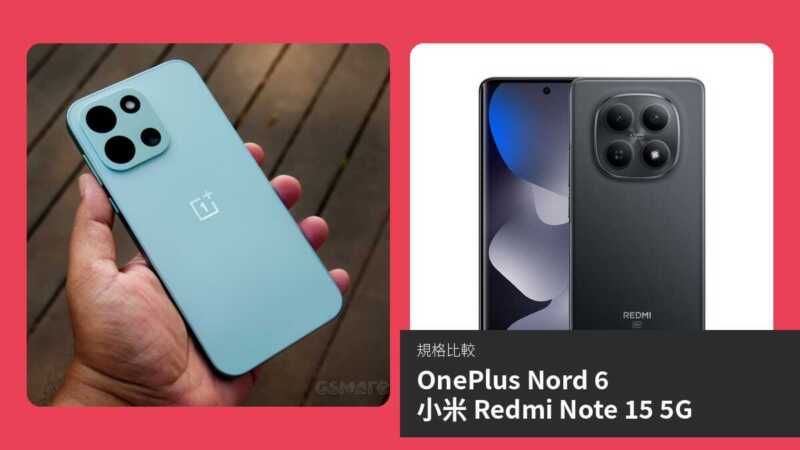【手機比較】OnePlus Nord 6 與 小米 Redmi Note 15 5G:規格表、效能、攝影功能