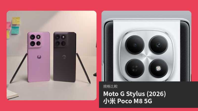 在2026 年中階手機市場,Motorola 推出的 Moto G Stylus (2026) 與小米 Poco M8 5G 成為焦點。前者於4 月發佈,強調內建 Stylus 觸控筆及頂級防水規格;後者1 月已上市,憑藉更大電池及更長軟件支援吸引注重續航用戶。本文將透過規格對比及詳細分析,幫助讀者了解兩機優劣,找出最適合日常使用或特定需求的選擇。