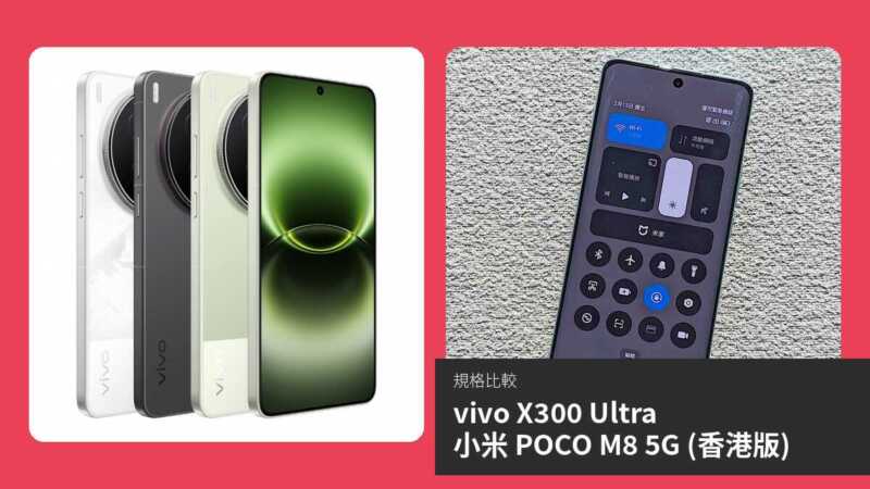 【手機比較】vivo X300 Ultra 與 小米 POCO M8 5G (香港版):規格表、效能、攝影功能