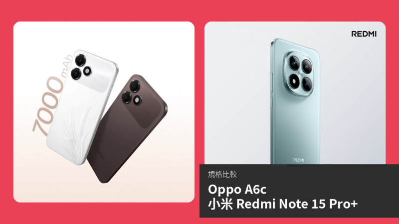 【手機比較】Oppo A6c 與 小米 Redmi Note 15 Pro+:規格表、效能、攝影功能