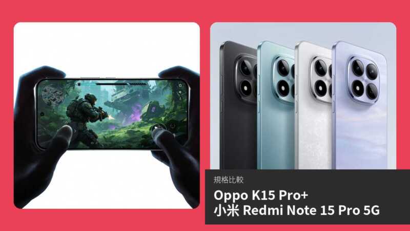 綜合比較,Oppo K15 Pro+ 在效能(3 nm 晶片、UFS 4.1)、電池(8000 mAh、100W)、屏幕更新率(165 Hz)、錄影能力領先,適合遊戲玩家、重度用戶與追求續航者。小米 Redmi Note 15 Pro 5G 則在主攝像素(2 億)、屏幕亮度(3200 nits)、前置相機、AI 攝影功能與護眼認證更強,性價比高,適合攝影愛好者與日常使用者。
