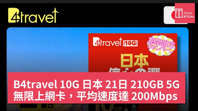 從技術角度睇,B4travel 10G 日本 21日 210GB 5G 無限上網卡喺速度和穩定性方面表現出色,但用戶需注意,5G 覆蓋僅限於特定地區。總體而言,數據顯示此卡適合重度用家,並提供穩定的上網體驗。使用博客專屬優惠碼 KERBB 可享 5% 折扣。