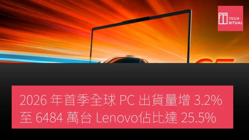 2026 年第一季度,Lenovo穩居全球 PC 市場第一,出貨量 1652.9 萬台,增長 8.7%,市佔率 25.5%。惠普居第二,但歐洲和美國市場疲軟,出貨量降 4.9% 至 1214.2 萬台,市佔率 18.7%。戴爾延續強勢,增長 7.8% 達 1029.1 萬台,市佔率 15.9%。Apple 憑 MacBook Air 穩健銷售及 MacBook Neo 初期鋪貨,增長 5.