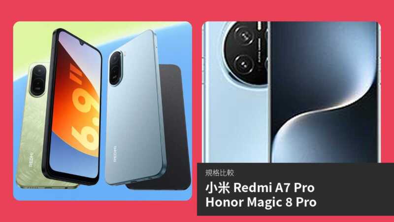 【手機比較】小米 Redmi A7 Pro 與 Honor Magic 8 Pro:規格表、效能、攝影功能