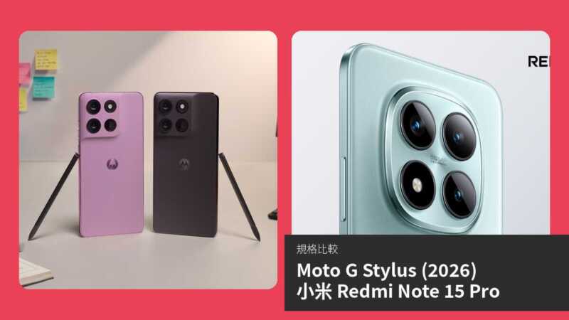綜合比較,小米 Redmi Note 15 Pro 在屏幕技術(Dolby Vision)、主相機(2億像素)、電池容量(6580 mAh)及RAM 選項(12GB)佔優,適合攝影及長續航需求用戶;Moto G Stylus (2026) 則勝在充電速度(68W+無線)、UFS 3.1 儲存、觸控筆、Wi-Fi tri-band 及3.5mm 孔,更適合遊戲、創作及注重便攜者。