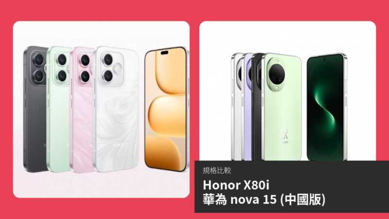 Honor X80i 作為榮耀於 2026 年 4 月發佈的中階機款,以超大電池和 AMOLED 屏幕為賣點,而華為 nova 15(中國版)則於 2025 年 12 月推出,搭載 HarmonyOS 6.0 和強大相機系統。本文將客觀比較兩款手機的規格與表現,涵蓋屏幕、效能、攝影、連接性等面向,幫助讀者了解各自優勢,選擇適合自身需求的一款。