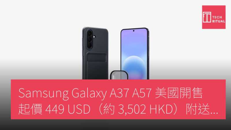Samsung 現已在美國市場開售全新預算導向的 Galaxy A37 及 Galaxy A57 兩款智能手機,早鳥購買者更可獲贈免費手機殼。Galaxy A37 定價 US$449,約 HK$3,502;Galaxy A57 則售 US$549,約 HK$4,282。這兩款手機屬於 Samsung 的平價高性能產品線,預計將延續過往趨勢,在全球市場表現出色。