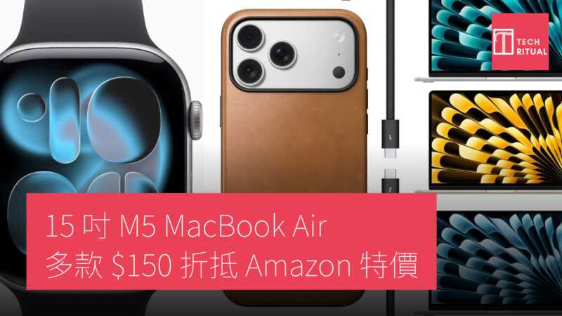 Apple 15 吋 M5 MacBook Air 優惠價登場,1TB 版本降 US$150 Apple 最平價的 15 吋 M5 MacBook Air 現於 Amazon 提供全系列顏色優惠,1TB 版本更低至 US$150 折扣。15.3 吋 Liquid Retina Display 機型包括 16GB/512GB 及 16GB/1TB 配置,24GB 版本亦有部份優惠,全部直減 US$150。