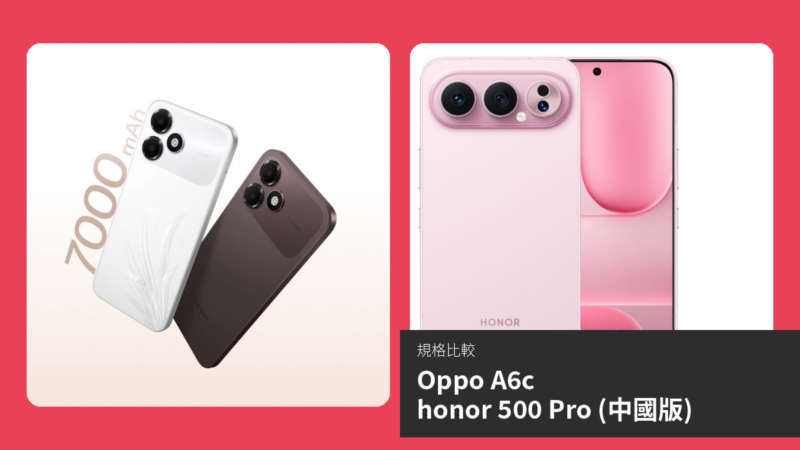 整體而言,Honor 500 Pro 規格更強大,是旗艦級選擇;OPPO A6c 則為實用入門機。建議依需求選購:效能優先選 Honor,續航優先選 OPPO。