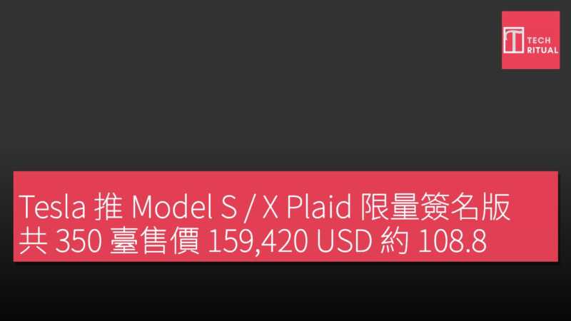 | 項目 | Model S Plaid 簽名版 | Model X Plaid 簽名版 | |——|———————-|———————-| | 售價 | US$159,420,約 HK$1,243,476 | US$159,420,約 HK$1,243,476 | | 車身顏色 | 石灰簽名車身系統、金色卡鉗 | 22 英寸 Machina 輪圈、紅色卡鉗 |