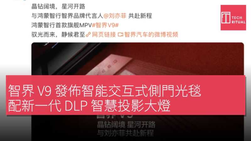 智界汽車發佈智界 V9 智能交互式側門光毯影片,同時宣布劉亦菲擔任品牌代言人,迅速引起市場關注。作為鴻蒙智行首款旗艦 9 系 MPV,智界 V9 首發搭載智能交互式側門光毯,並同步配備全新一代 DLP 智慧投影大燈。以光影為媒介,將迎賓儀式、智能交互與行車安全深度融合,展現 MPV 領域的技術高度。