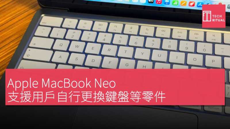 MacBook Neo 發佈前有報導指 Apple 開發新製造工藝,比現有筆電更快更省成本。這是首款無需更換整個上蓋組件即可維修鍵盤的 MacBook,例如 M5 MacBook Air 的鍵盤維修費高達 US$412.72,約 HK$3,217,超過 MacBook Neo 三倍以上。 商店似乎不限零件顏色,用戶可為銀色機身選購柑橘色底部外殼,或靛藍鍵帽(US$39,約 HK$304)替換粉紅色版本。