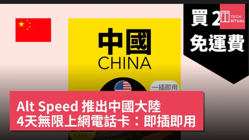 Alt Speed 中國大陸 4天無限上網電話卡以其即插即用及穩定的網絡服務為賣點,售價 HK$135。此款產品特別適合短期在中國大陸旅行的用戶,無論係上網查資料、社交分享或觀看視頻,都能輕鬆應對。用戶只需購買兩張即可享受香港送貨免運費,增強了整體性價比。