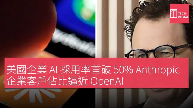 在年化經常性收入(ARR)維度,反超已然發生。Anthropic 的 ARR 已突破 300 億美元(約 HK$2340 億),超過 OpenAI 同期的 250 億美元(約 HK$1950 億),這是自 2022 年 ChatGPT 發佈以來,首次有競爭對手在收入規模上超越 OpenAI。 Ramp 報告還揭示更宏觀趨勢:美國企業 AI 採用率 3 月首次突破 50% 大關,達 50.