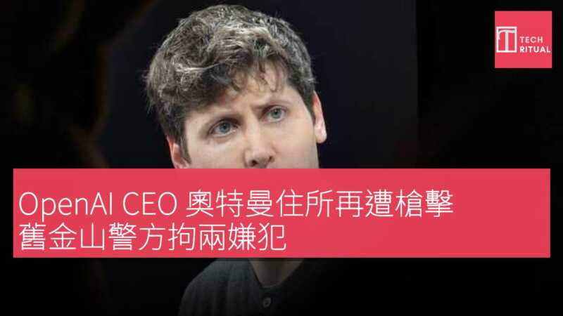 OpenAI CEO 奧特曼住所再遭槍擊 舊金山警方拘兩嫌犯
