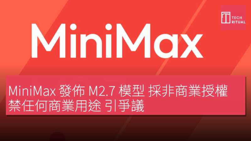 人造智慧公司 MiniMax 近日宣佈開源其最新模型 M2.7,惟此舉在開源社群引發激烈爭議。起因在於 MiniMax 採用的開源許可證並非標準版本,而是非商用許可證。此許可證明確規定不得用於商業用途,無論是 M2.7 模型本體或衍生版本,若需商業性使用,必須事先取得 MiniMax 書面授權。這意味著模型無法供網站如 OpenRouter 等透過自家 GPU 叢集運行並對外提供服務,除非平台已獲 MiniMax 授權。