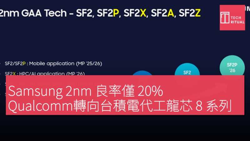 但 Samsung 2nm 良率仍是個問題,去年下半年良率僅 20%,這樣的良率無法量產,會導致晶片成本極高。最新良率已大幅提升,但仍低於穩定生產所需的 60% 水準,而台積電的 2nm 工藝可穩定在 60-70%,Qualcomm標準要求 70% 以上,台積電能達標。這個問題多年來也是 Samsung 在競爭中落後台積電的關鍵,良率高低決定產能與成本,台積電在 28nm 節點之後特別開掛,每代工藝基本上都能穩定提升,客戶可放心交給台積電生產,哪怕先進工藝成本不斷提升也換不來代工廠。
