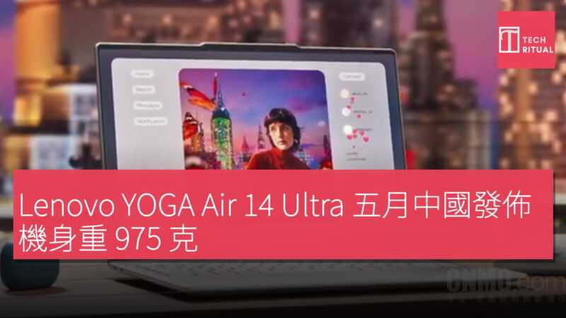 Lenovo官方宣布,旗下超輕薄旗艦 AIPC——YOGA Air 14 Ultra 即將於五月在中國市場發佈。這款產品以 975 克極致重量和 180TOPS 綜合 AI 算力為核心賣點,定位為「超輕薄旗艦 AIPC」,針對移動辦公和 AI 應用場景提供高性能便携解決方案。YOGA Air 14 Ultra 最早於 2026 年 1 月在 CES 國際消費電子展上亮相,其海外型號為 Yoga Slim 7i Ultra Aura Edition。