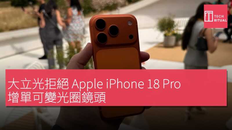 大立光拒絕 Apple iPhone 18 Pro 增單可變光圈鏡頭
