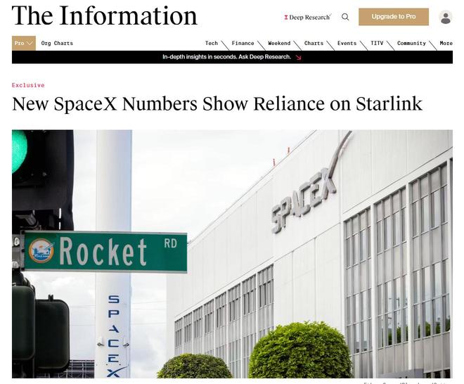 根據 The Information 取得的未公開財務數據,SpaceX 總營收約 187 億美元,約 HK$1458.6 億,但各業務部門呈現冰火兩重天局面。Starlink 無疑是火一方,去年這項衛星互聯網業務同比增長 50%,並佔據 SpaceX 總銷售額的 61%。更重要的是,這是目前唯一產生現金流的業務。細算這筆財務帳目,Starlink 去年的調整後 EBITDA 利潤率達 63%,2023 年為 41%,2024 年升至 50%,顯示強勁上升趨勢。
