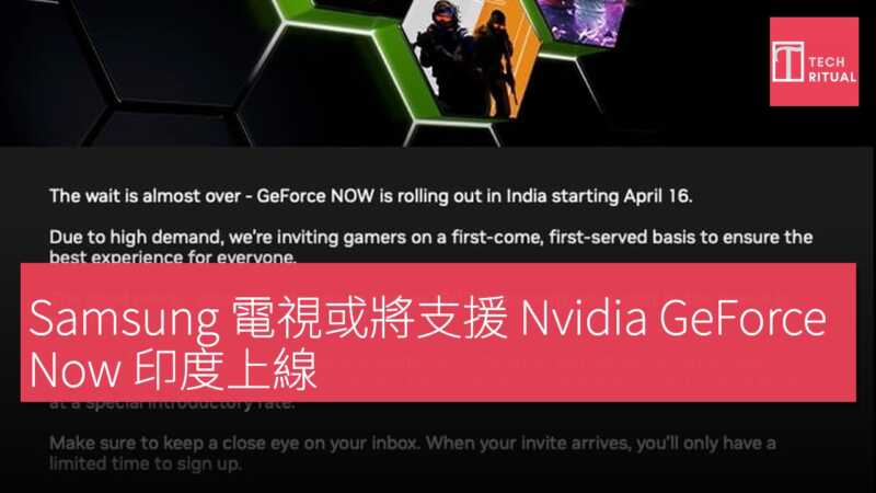 Nvidia 早前向印度用戶發送電郵,宣布 GeForce Now 將於 2026 年 4 月 16 日起在印度陸續推出。此舉讓印度用戶能透過 Nvidia 的雲端遊戲串流平台遊玩遊戲。服務支援高達 5K 解析度及 360fps HDR 串流,適用於相容裝置。預計 Samsung 搭載 Tizen OS 的電視及顯示器,將透過 GeForce Now 應用程式提供支援。