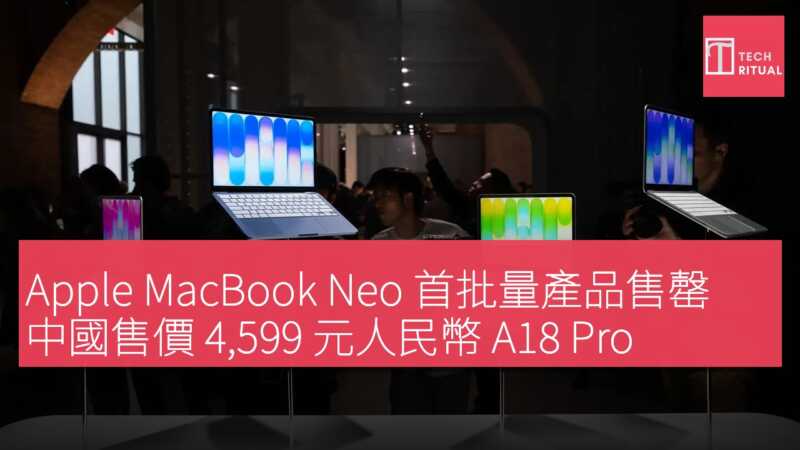 Apple MacBook Neo 首批量產品售罄 中國售價 4,599 元人民幣 A18 Pro 芯片庫存告急