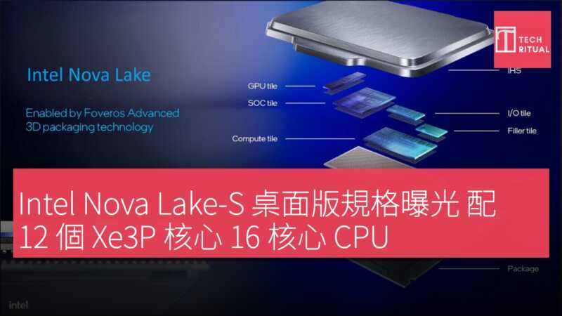Intel 下一代桌面級 Nova Lake-S 處理器,即 Core Ultra 400 系列的初次規格曝光。發燒級最高配備 52 核心 CPU 及 175W 功耗,主流行最高 28 核心 CPU 搭配 125W 功耗,內顯則配備 2 個 Xe3 核心。不過根據最新消息,Intel 還初次規畫了一個超強內顯版本,配備多達 12 個 Xe3P 核心。消息同時指出,為支援如此強大的內顯,主板需提供單獨的兩相 VCCGT 供電。