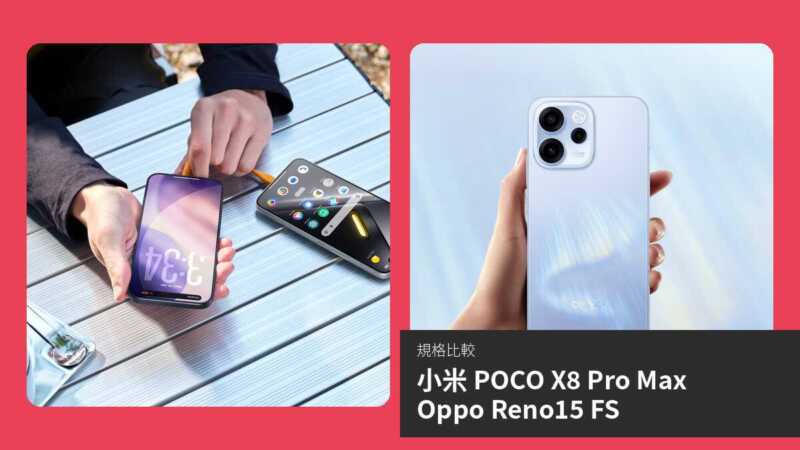 整體而言,POCO X8 Pro Max 規格更高端,性價比更高,適合追求頂級效能者;Reno15 FS 則是均衡中階選擇。若預算充裕及需強大續航,選 POCO;若偏好輕薄自拍機,Reno15 FS 更合適。最終依個人需求而定。